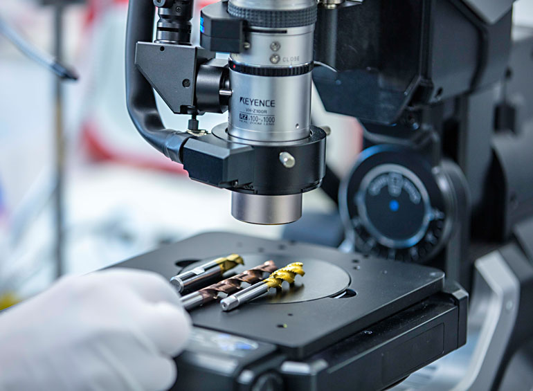 Die umfangreichen Analysemöglichkeiten (HRC, Calotester, verschiedene optische Mikroskopie-Verfahren, Mikrohärtemessung, REM, EDX, Diffraktometrie XRD) erlauben uns sowohl eine optimale Qualitätsüberwachung der Produktion wie auch eine effiziente schnelle Optimierung bestehender und neuer Schichtstrukturen und Schichttexturen zu erreichen.