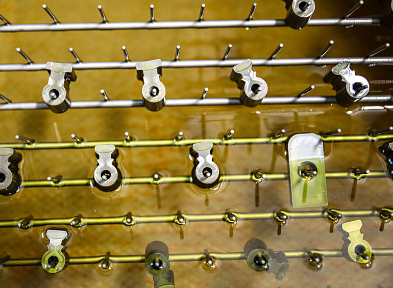 Für dekorativen Anwendungen empfehlen wir nach dem Entschichten ein Aufpolieren der Teile (re-avivage), da bereits kleinste Veränderungen der Oberfläche zu einem farblich leicht abweichenden Ergebnis führen können.